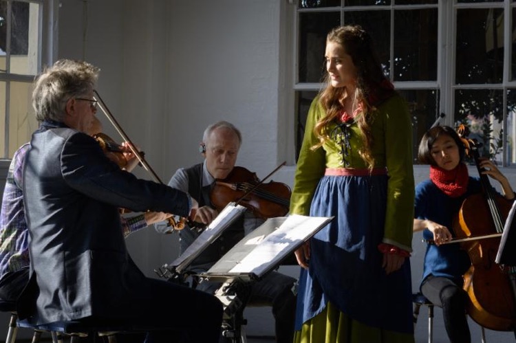 Kronos Quartet and soprano Rowen Sabala (Vireo). Photo by David Soderlund